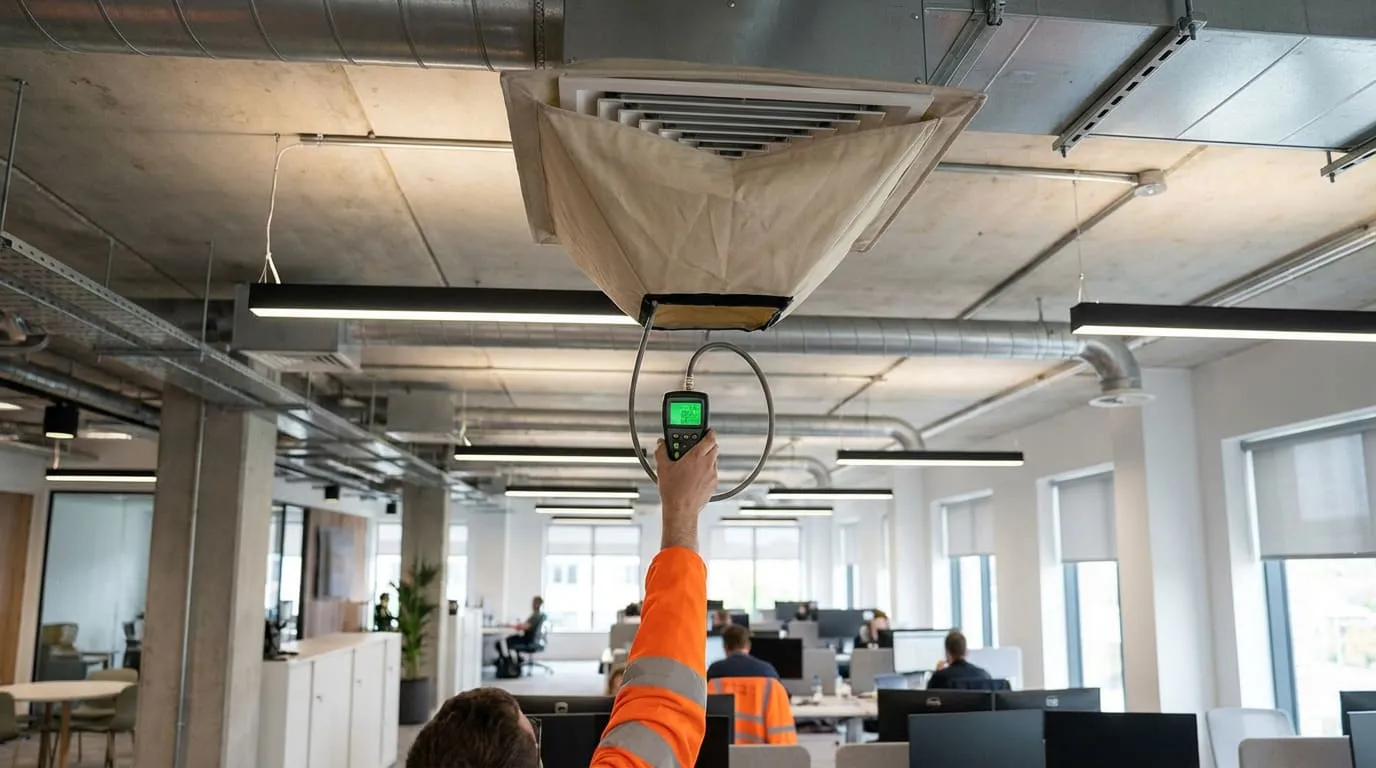 герметичность воздуховодов по классу, настройка клапанов/заслонок, измерения анемометрами/расходомерами, балансировка по помещениям